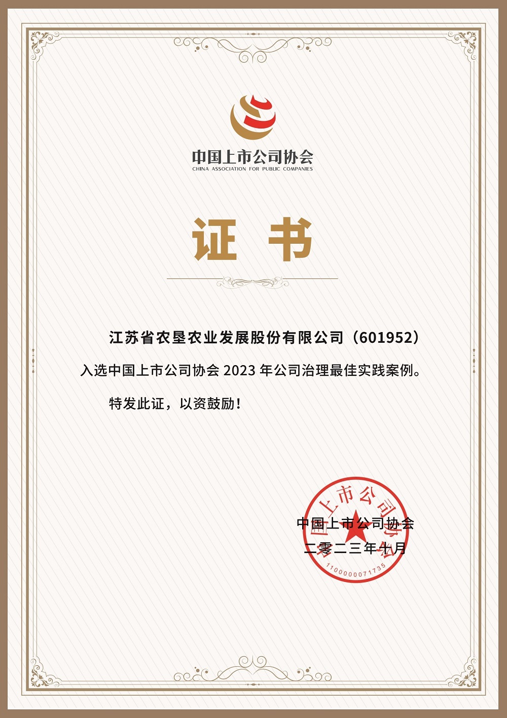 近日,苏垦农发连获“2023年公司治理最佳实践案例”和“2023年上市公司乡村振兴最佳实践创建优秀实践案例”两项荣誉,体现了苏垦农发在公司治理、助力乡村振兴等方面的工作得到了社会的高度认可。今年7月,中国上市公司协会分别开展了“2023年公司治理最佳实践案例评选活动”和“2023年上市公司乡村振兴最佳实践创建案例评选活动”,由相关领域专家学者组成专家评审委员会对相关单位选送的实践案例开展严格遴选及多轮评审,最终评选出入选公司治理最佳实践案例的上市公司100家,入选上市公司乡村振兴优秀实践案例的上市公司109家,两项评选活动苏垦农发均成功入选。苏垦农发高度重视并不断探索发挥法人治理结构在推进高质量发展中的作用。围绕“建设成为国内一流现代农业上市公司”的目标,通过不断拓宽信息传递渠道、搭建沟通交流平台、提升综合履职能力等方式,形成了具有苏垦农发特色的“关键少数”公司治理参与机制,营造了公司与独立董事之间良好的互动和互信氛围,实现了公司治理体制的高效运行,完善了与公司经营战略相契合的治理体系,有效保障了公司股东尤其是中小股东权益。苏垦农发牢记省委省政府赋予的使命和重要职责,始终将巩固拓展脱贫