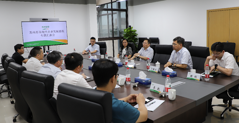 9月10日下午,苏州市委副秘书长祁立春、昆山市委副书记徐华东、苏州市农业农村局副局长王纯、昆山市政协副主席农业农村局局长于德山、昆山市陆家镇人大主席顾剑等领导同志视察苏州苏垦现代农业发展有限公司新办公区并指导工作,苏州农发董事长俞颂家、苏垦农发副总裁陈培红、苏州苏垦总经理丁荣根等同志陪同视察。市委相关领导在听取汇报后,对苏州苏垦成立以来的工作予以充分肯定,同时要求苏州苏垦尽快融入苏州,快速打开局面,积极探索适用于苏州地区的农业发展新模式,扛起国企担当,发挥示范引领作用,助力苏州农业现代化建设。会上,俞颂家董事长汇报了苏州农发对苏州苏垦相关工作的推进情况,陈培红副总裁汇报了苏垦农发产业发展情况,并重点介绍了苏垦农发无人机监管系统和农产品质控管理系统,丁荣根总经理汇报了苏州苏垦的工作开展情况。