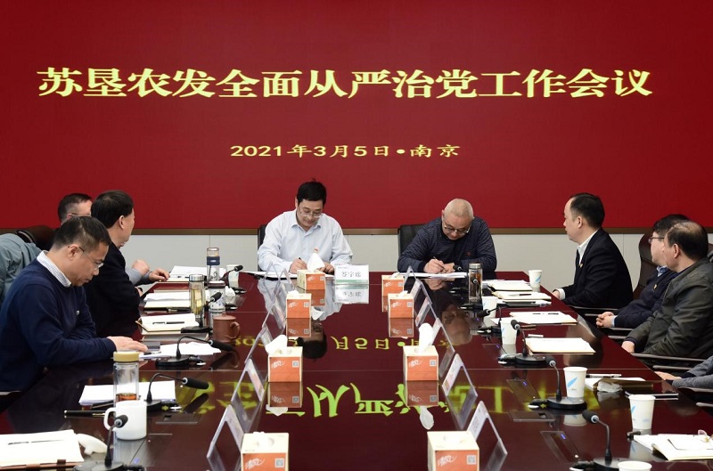 3月5日,苏垦农发召开全面从严治党工作会议。会议传达贯彻江苏农垦全面从严治党工作会议精神,总结2020年公司党建工作情况,部署2021年党建工作目标任务和措施要求,压紧压实各级主体责任,推动全面从严治党向纵深发展,以高质量党建引领高质量开局。集团副总经理、苏垦农发党委书记王立新主持会议。