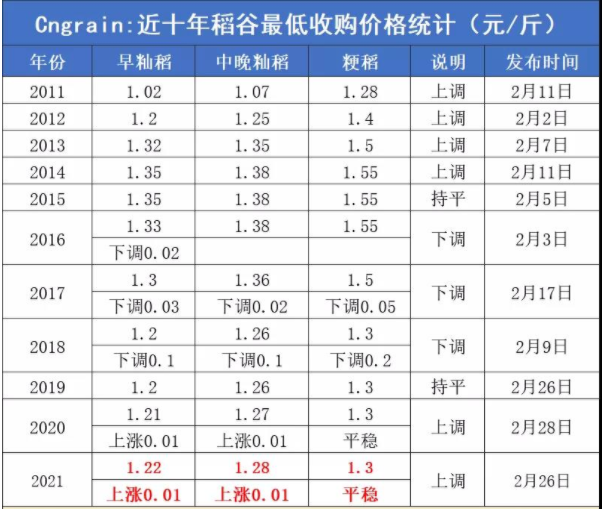 1、2021年稻谷最低收购价公布