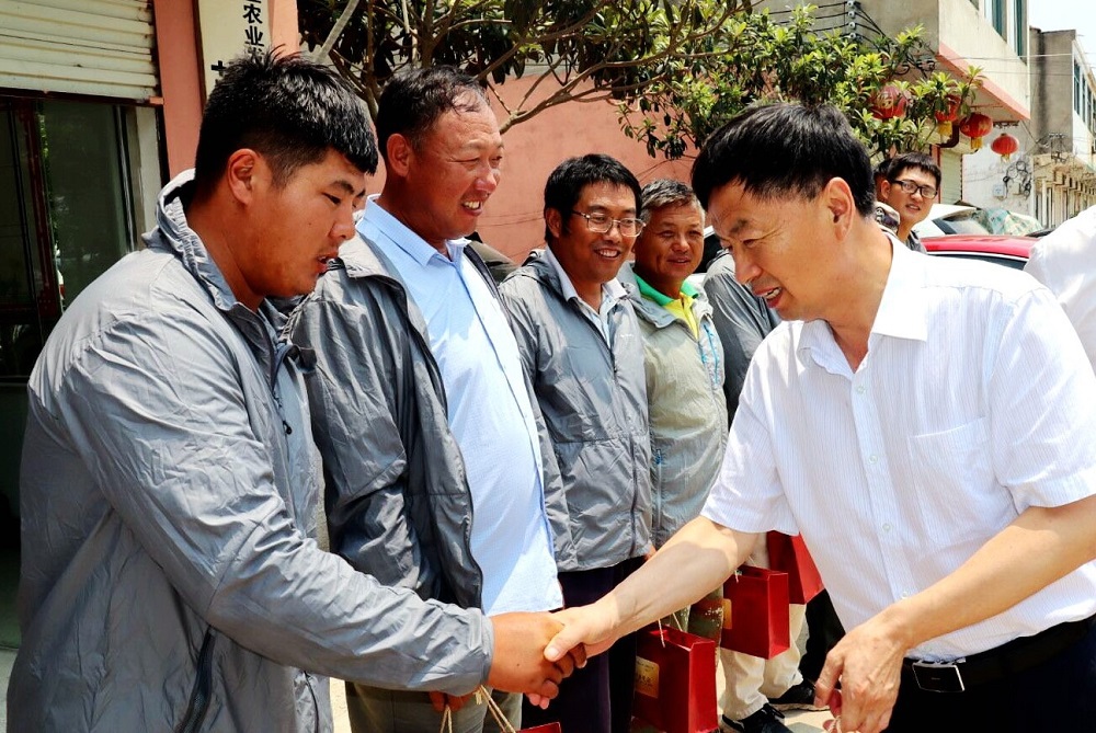 倪志愿先后来到基地员工宿舍、田间地头,向一线员工们表达了亲切的问候,对他们不畏高温、忠于职守、勤勤恳恳的工作态度表示敬意,并将防暑降温物品、安全生产手册送到管理人员手中,为他们加油鼓劲,感谢他们为苏垦农发高质量发展作出的积极贡献;叮嘱大家要合理休息,农业生产作业时一定要注意身体健康,避开午后高温天气,防止中暑。