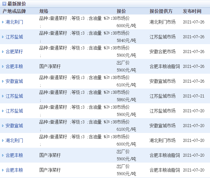 1、油菜籽价格行情