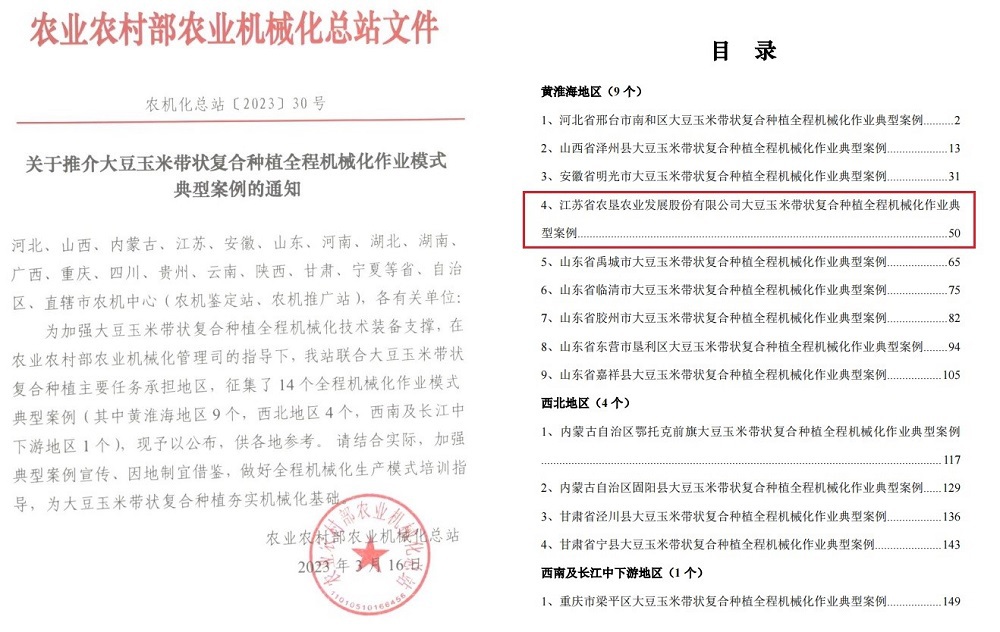 江苏农垦大豆玉米带状复合种植全程机械化作业模式入选农业农村部推介典型案例