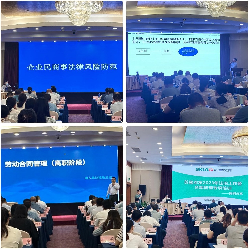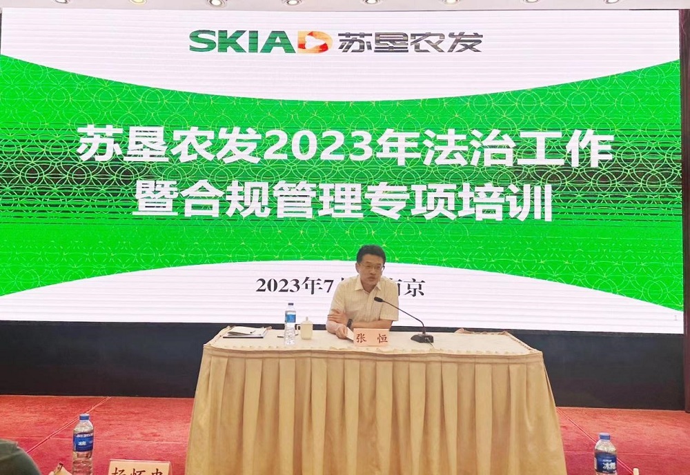 为进一步深化推进公司法治建设,提升公司总部及下属各单位法治及合规管理水平,7月27日至28日,苏垦农发在南京举办法治工作暨合规管理专项培训,公司党委委员、副总裁、董事会秘书张恒出席会议并讲话。