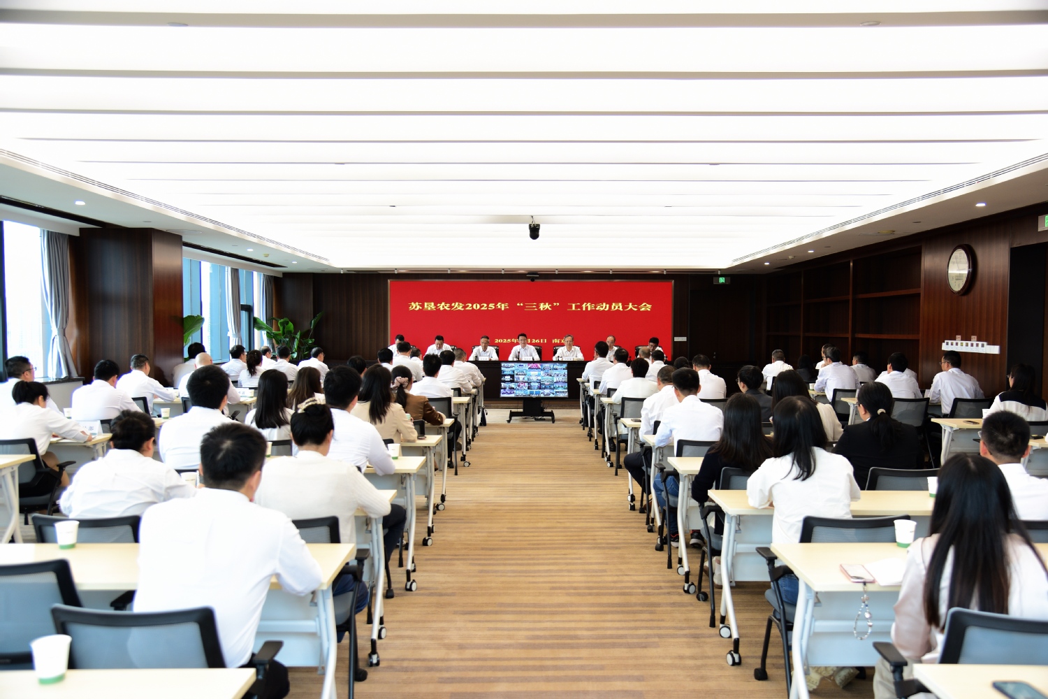 会议以视频形式召开,苏垦农发班子成员、驻宁子公司班子成员、总部部门副总经理以上人员在主会场参会;非驻宁分子公司班子成员、有关部门负责人在分会场参会。